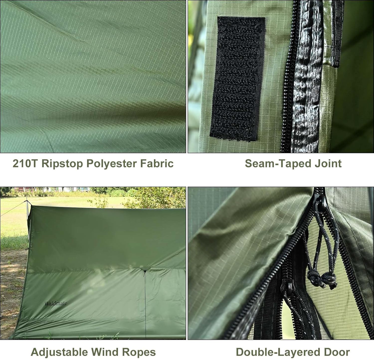 • 【High Quality Material】The tent is made of 210T Ripstop Polyester fabric with 3000mm waterproof. The joint is seam-taped to ensure the waterproof effect. Adjustable wind ropes can make tent remain stable in windy conditions. The door is double-layered, which makes the tent airier and avoid being disturbed by insects.